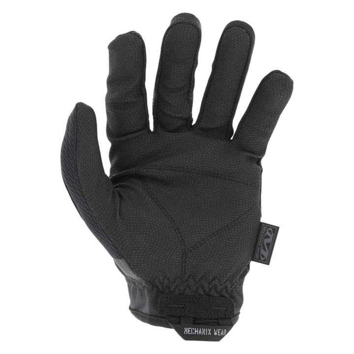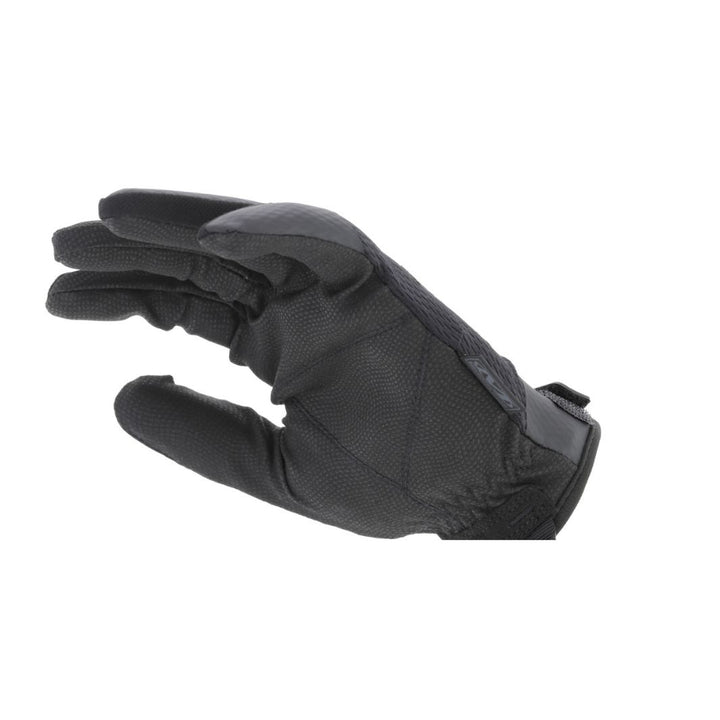 Palm side of Mechanix black 0.5mm glove with tactile grip for weapon control and mechanical work