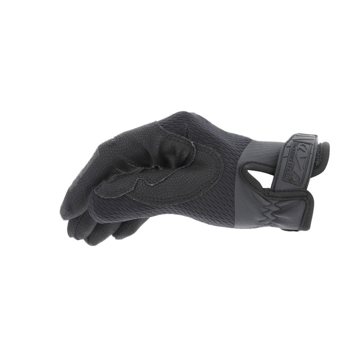 Side profile of Mechanix 0.5mm high-dexterity glove in black with precision fit and wrist closure
